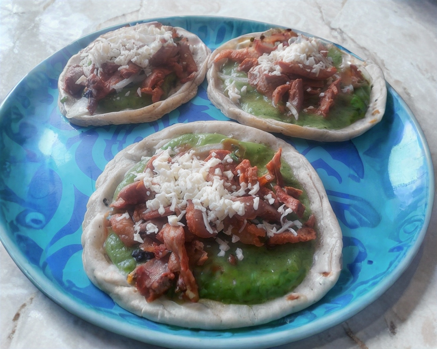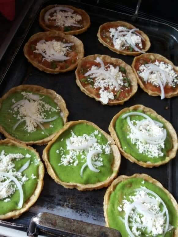 PICADA SENCILLA CON SALSA VERDE, QUESO Y CEBOLLA