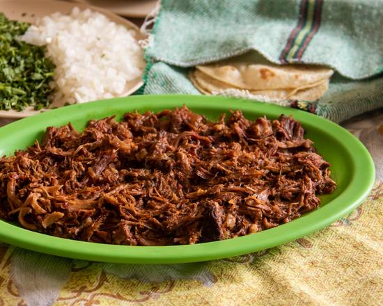 3/4 de kilogramo de barbacoa de res y 2 consomés grandes.