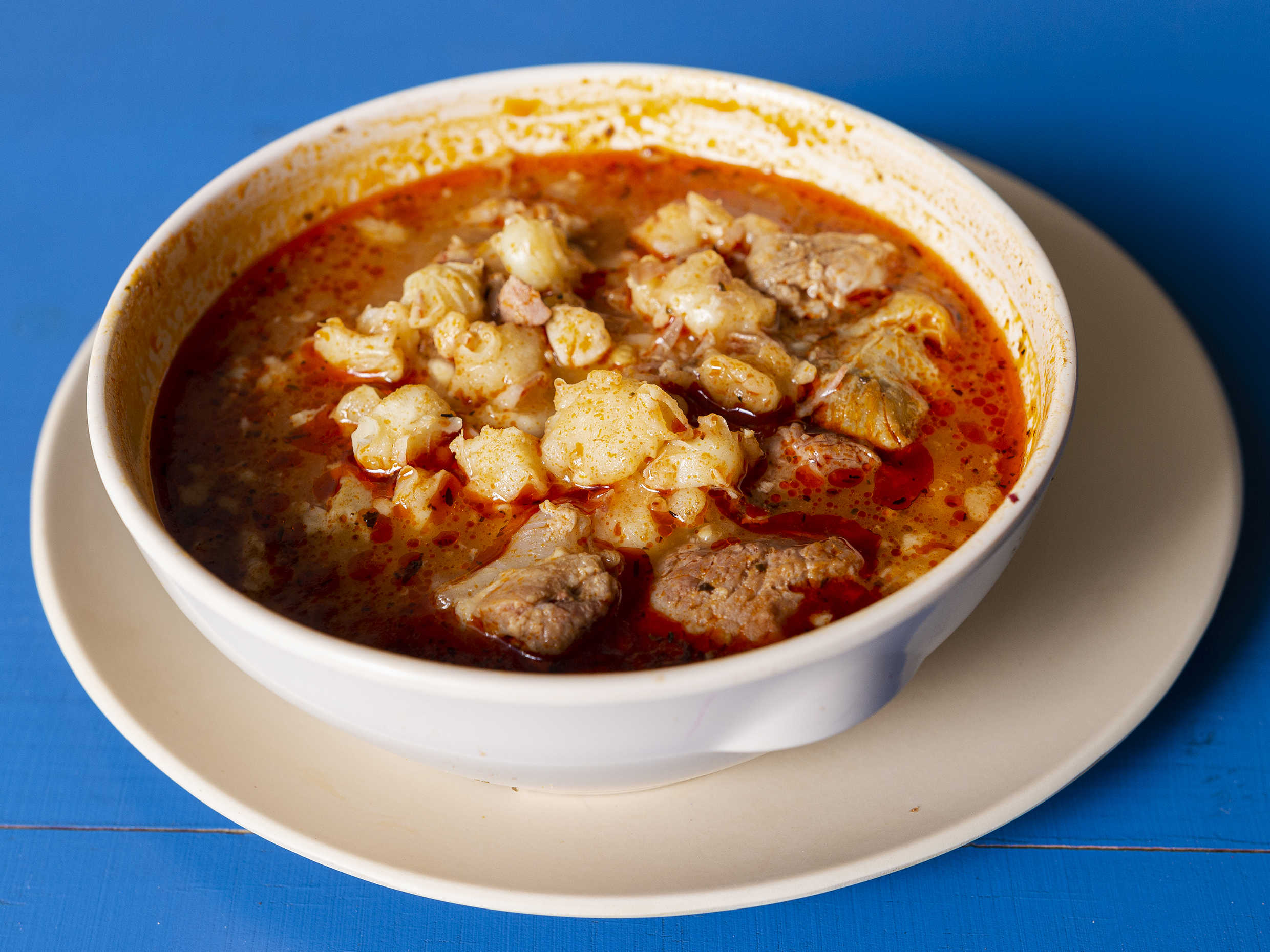 3/4 de kilogramo de barbacoa de borrego y dos consomés grandes.