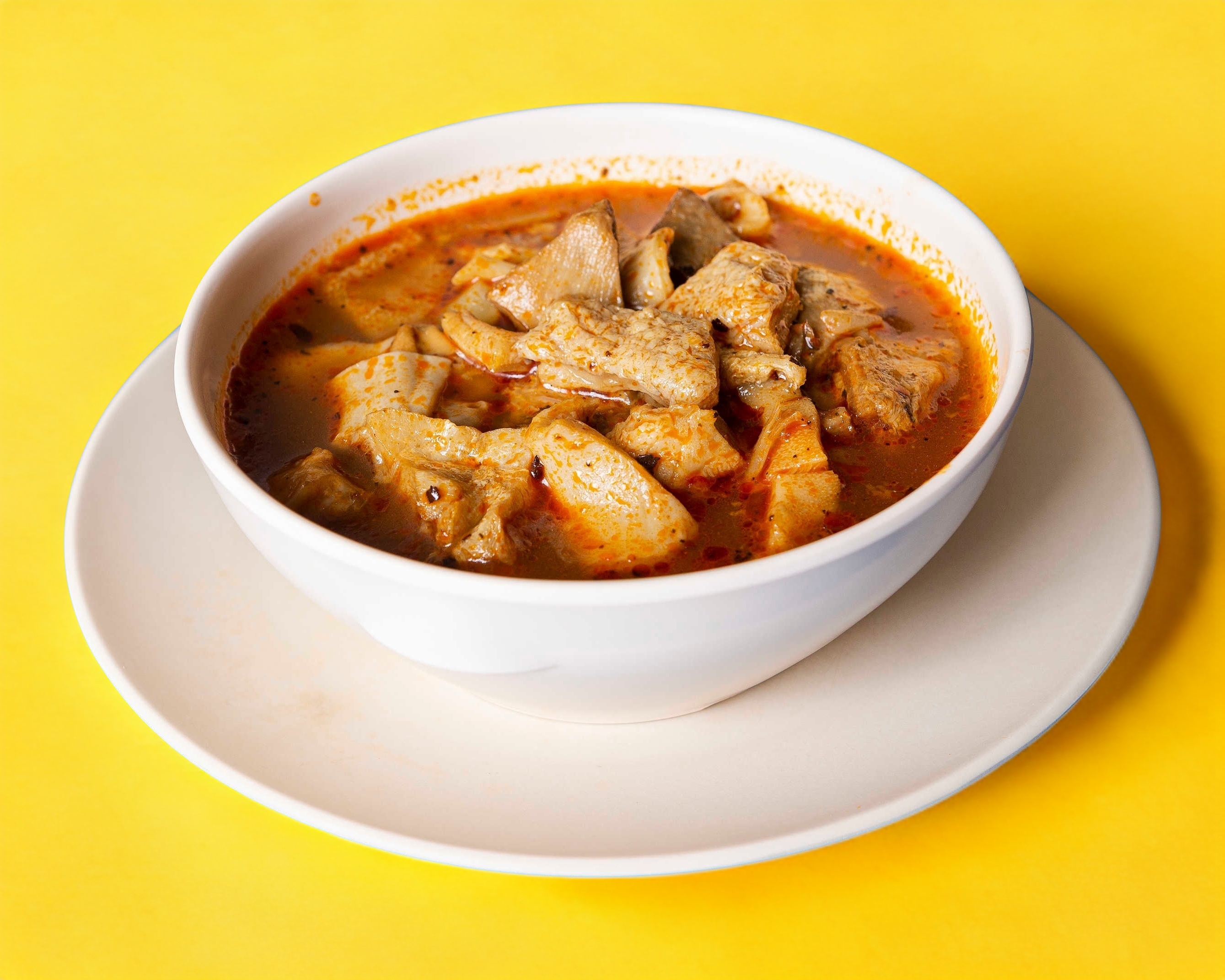 Pozole chico acompañado de cebolla, rabano, limon y salsa de 1/2 Litro