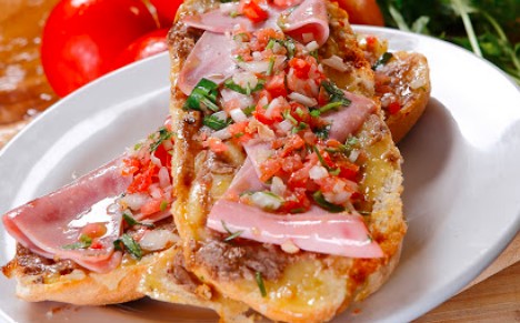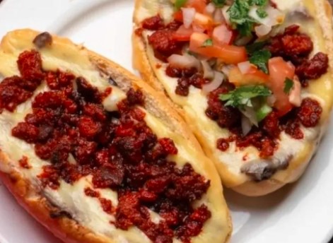 frijoles, jamon, queso manchego, pico de gallo y aguacate