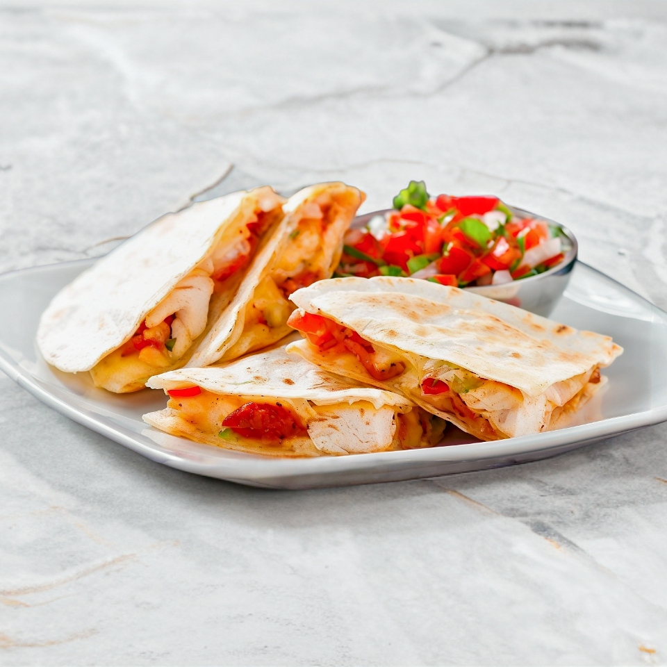 Tortilla con salsa de tu preferencia, queso y cebolla