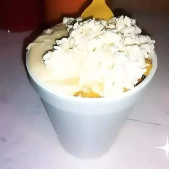 Grano amarillo,mayonesa,crema,queso amarillo y queso fresco