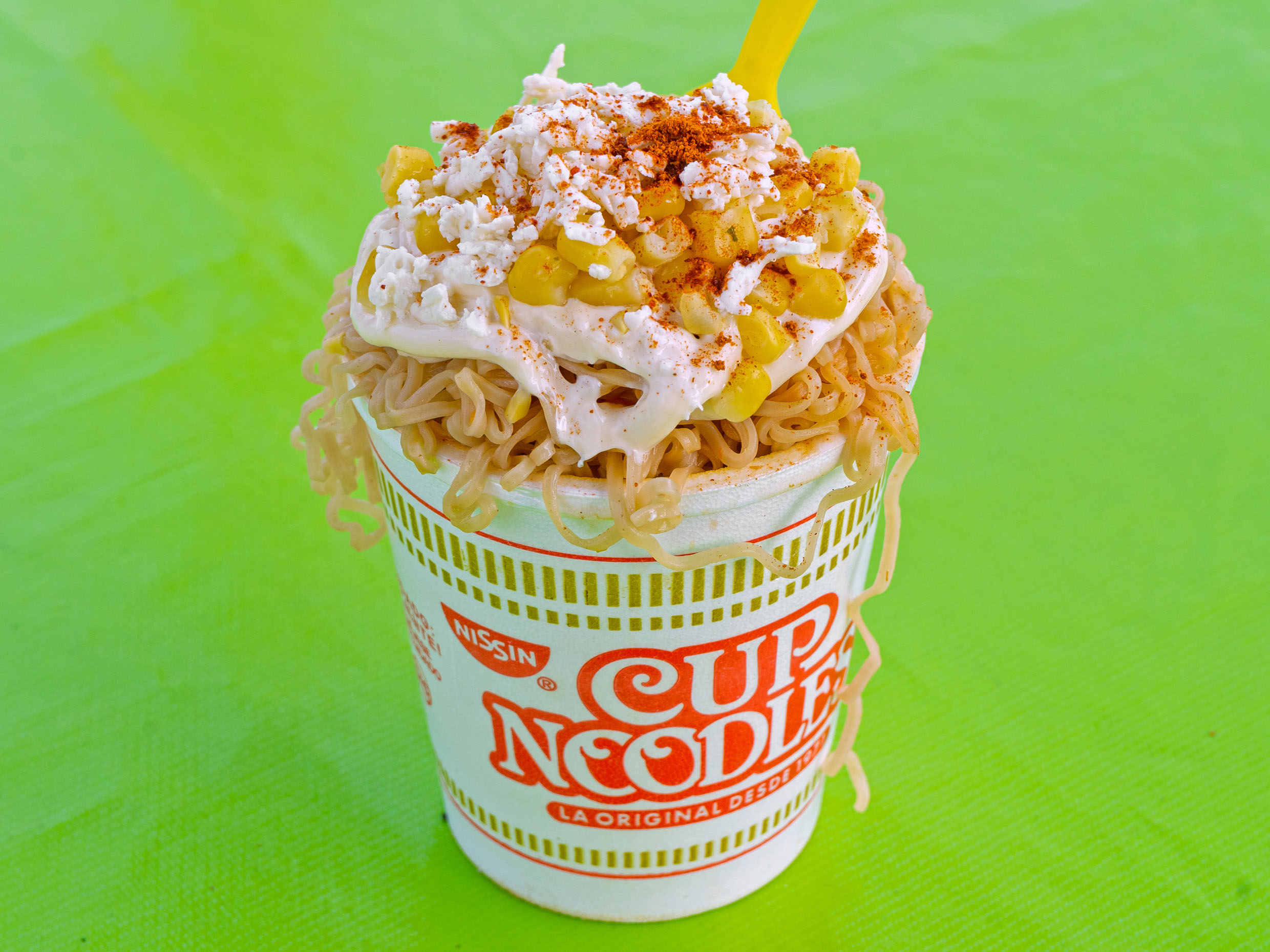 sopa instantanea (pollo, camaron ,res) ,preparada con grano de elote,mayonesa,crema,queso 1lt