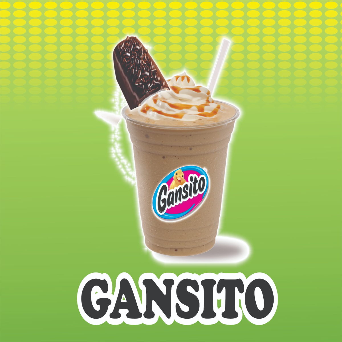 Frappé gansito Leche ,hielo ,café instantáneo,pastelito Gansito, azúcar, crema Chantilly, chocolate Hershey's, servido en vaso de 16 OZ