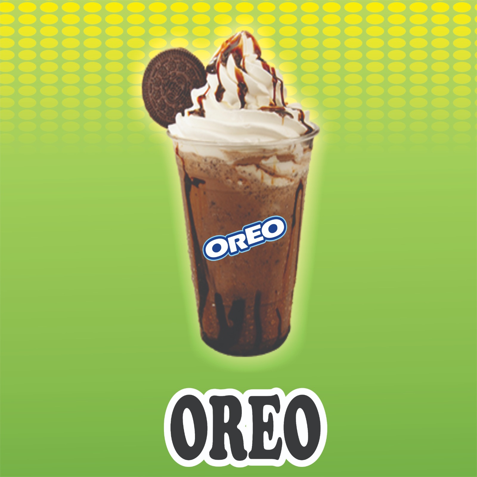 leche,hielo, café instantaneo,galletas oreo,azucar,crema chantilly, y chocolate hersheys 16oz
