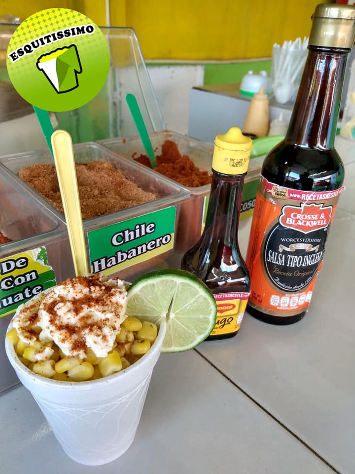 Grano de elote, con mayonesa, queso y crema. Vaso de 12oz.