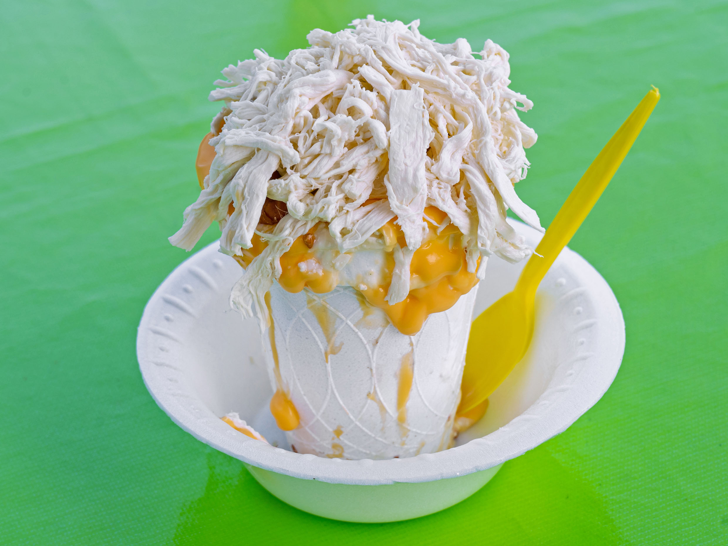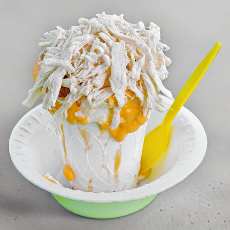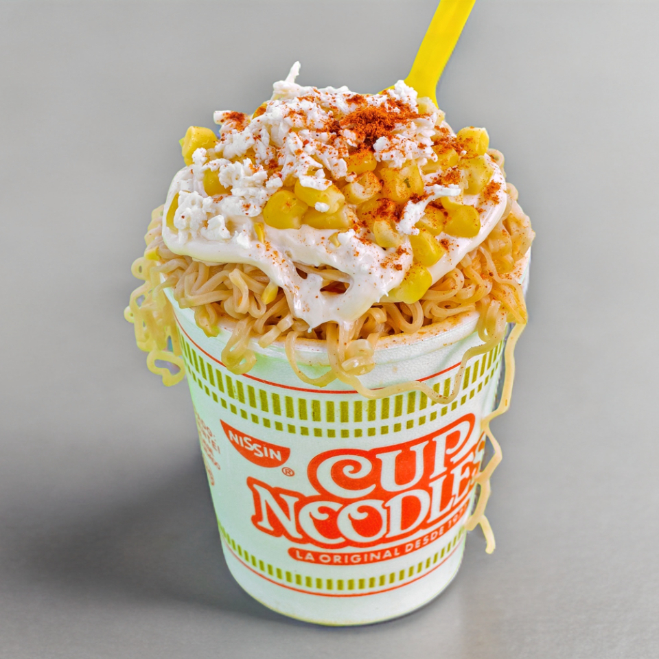 Sopa instantánea de 32 oz preparada con grano de elote, mayonesa, crema y queso; eliges la proteína, el chile va por separado.