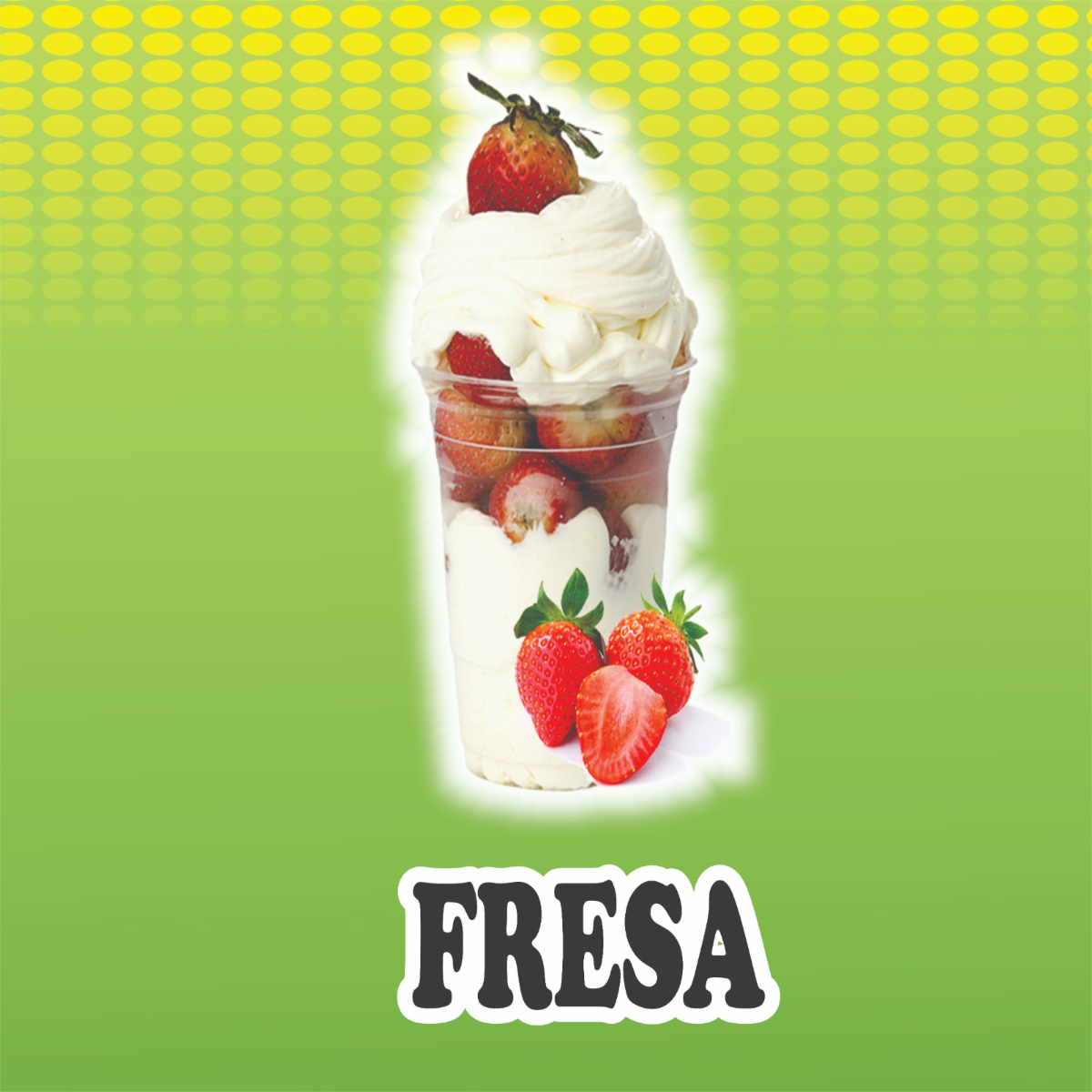 Fresas con crema de la casa servidas en vaso de 10oz con un toping a elegir