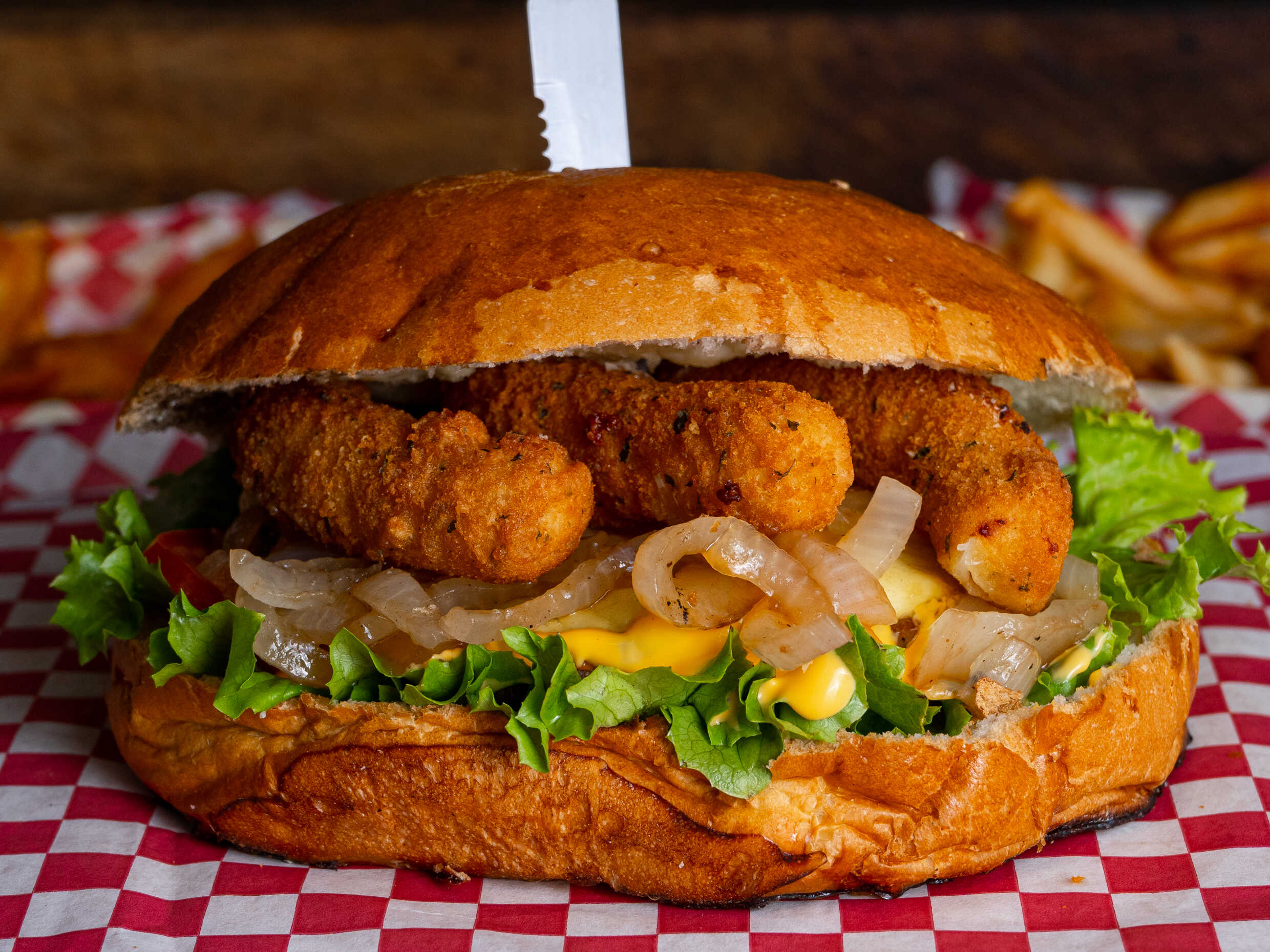 Carne de sirloin, gratinada con doble queso gouda y americano, tocino cebolla caramelizada y dedos de queso.