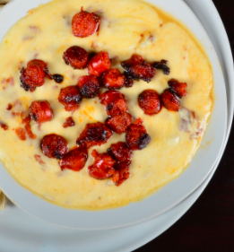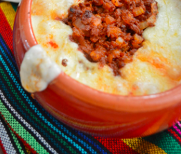 Acompañado con cebollitas cambray, guacamole y papas fritas o quesadilla.