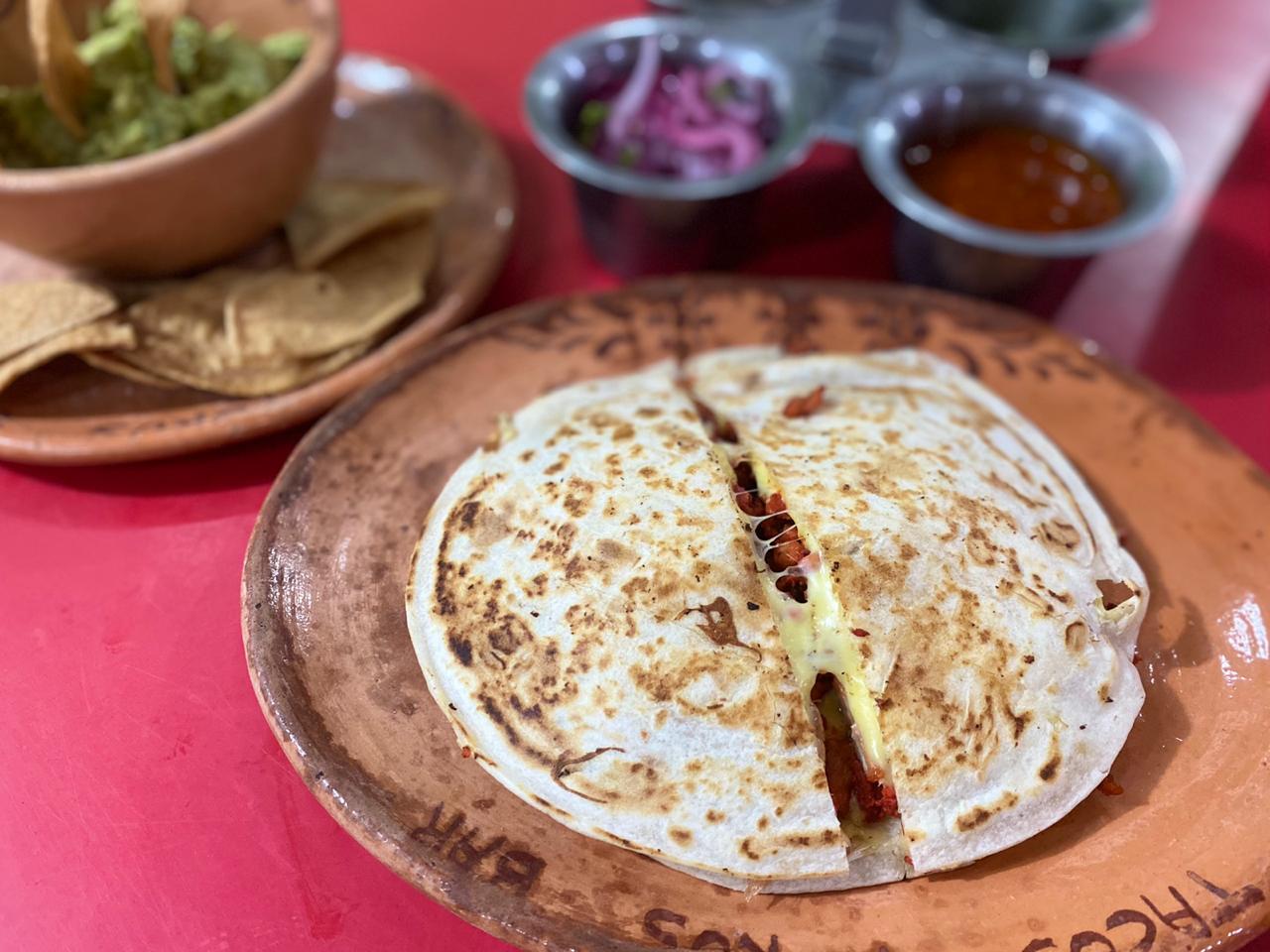 Acompañado de cebollitas cambray, guacamole y papas o quesadilla.