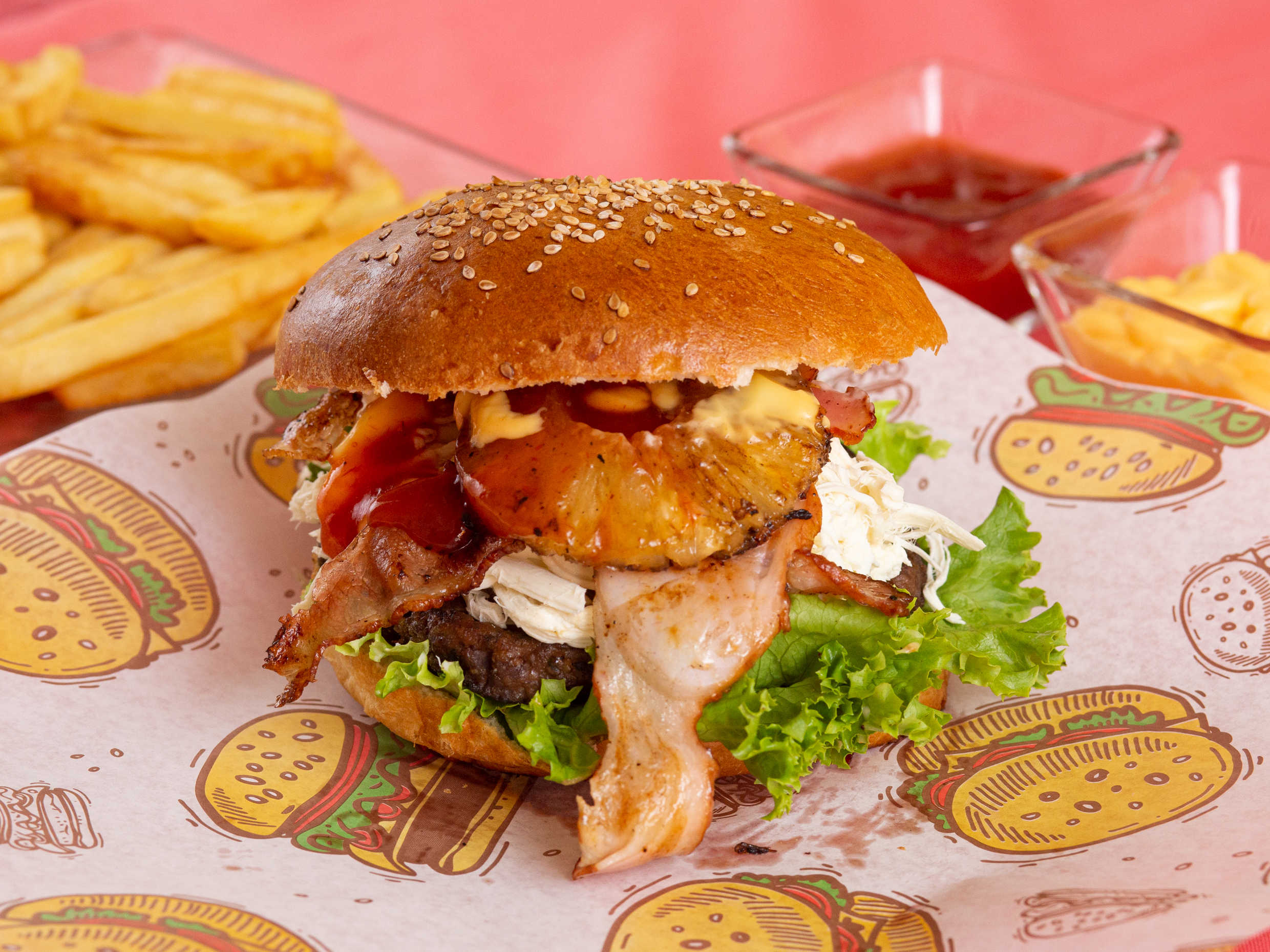 Hamburguesa Hawaiana con Papas*1 + Hamburguesa King Star Jumbo con Papas*1