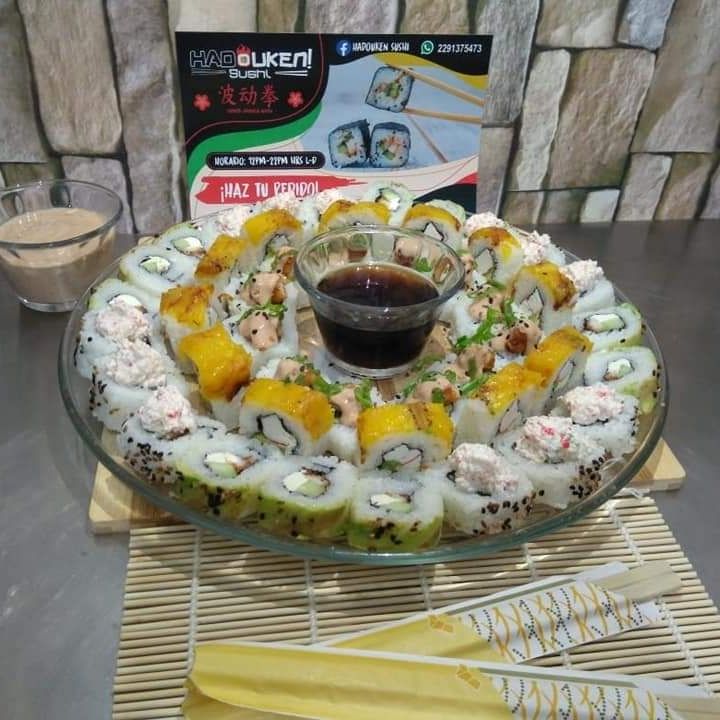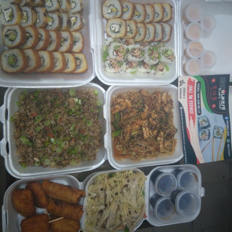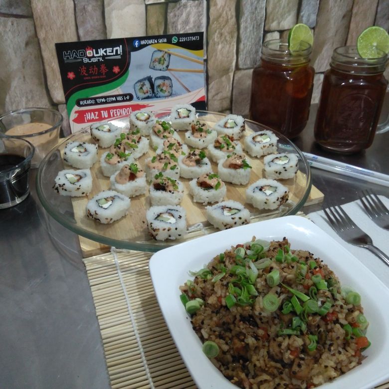 3 Rollos tradicionales y 1 de especialidad, 1 botana mixta grande, pasta de vegetales y arroz yakimeshi