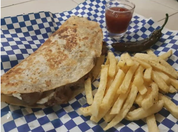BURRITOS CON PAPAS, CATSUP Y CHILE ASADO