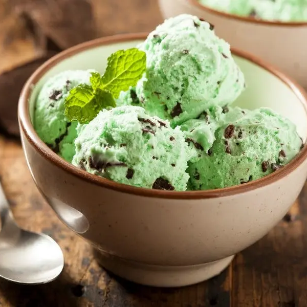 Helado de crema sabor a menta y trozos de chocolate