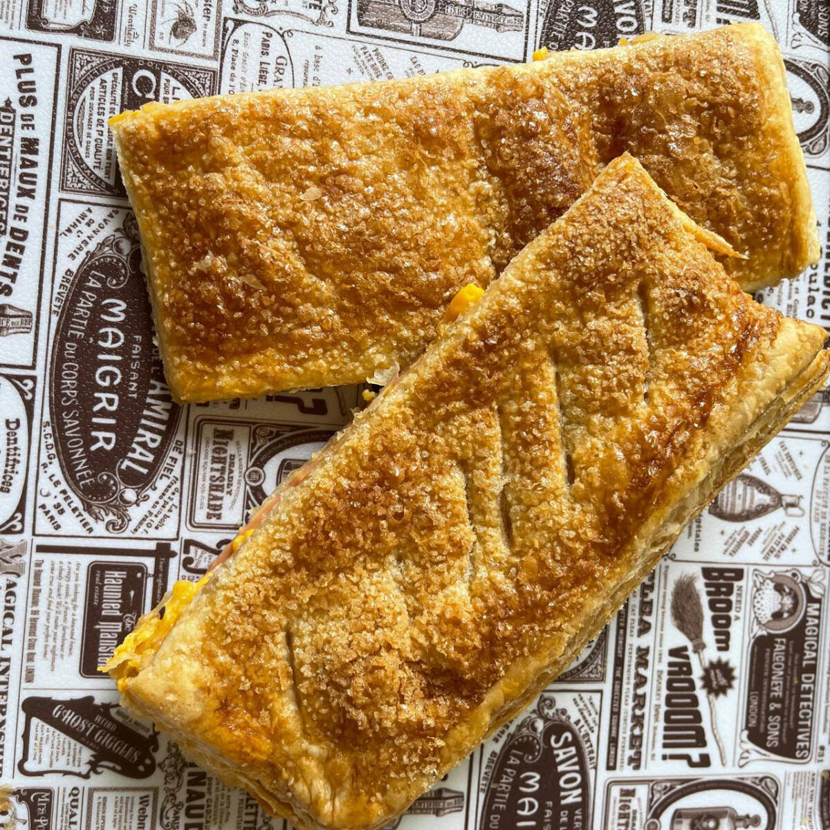 La clásica: Hojaldra azucarada de jamón de pavo y queso amarillo.