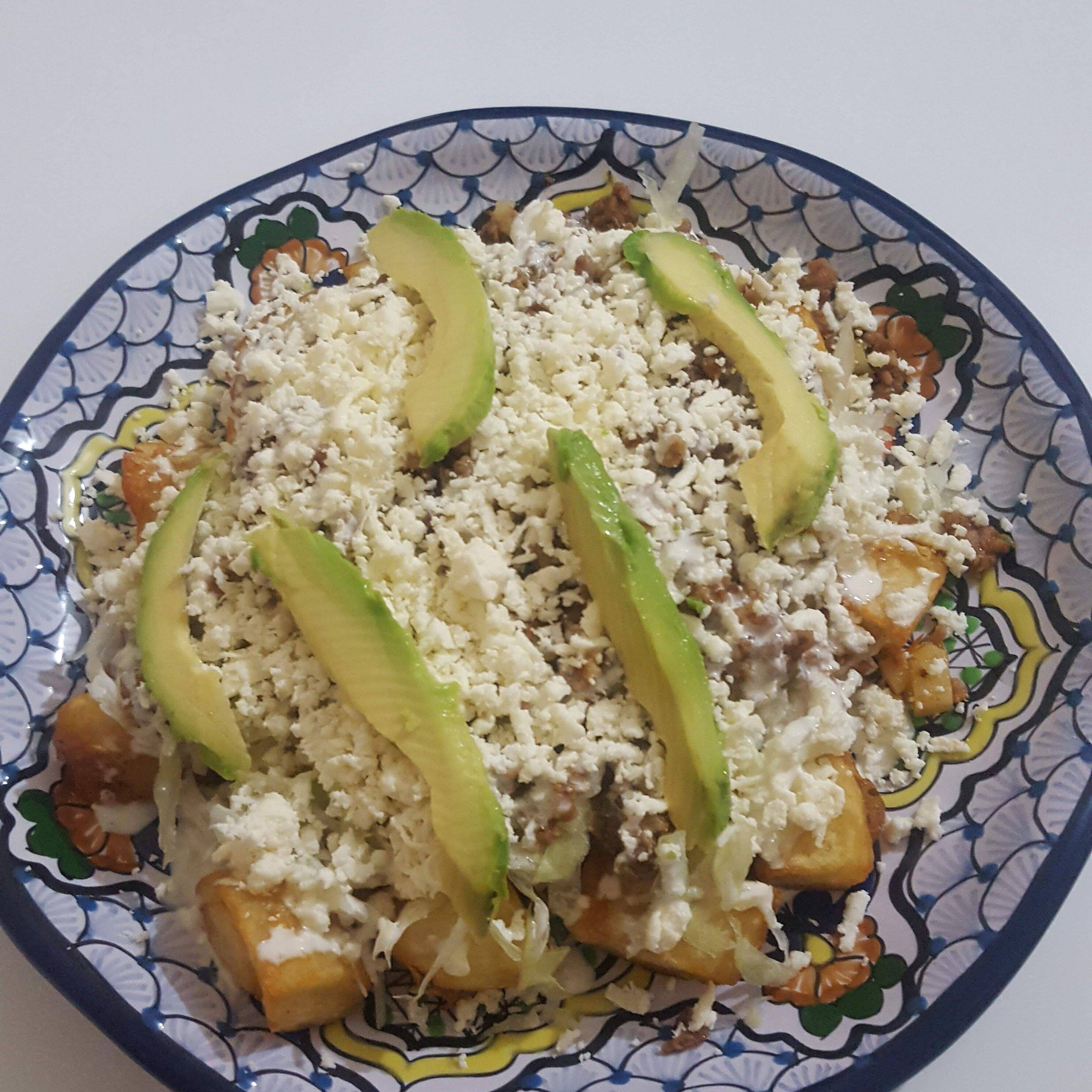 Papa frita preparada con ingrediente a elegir, lechuga, queso, crema y aguacate.