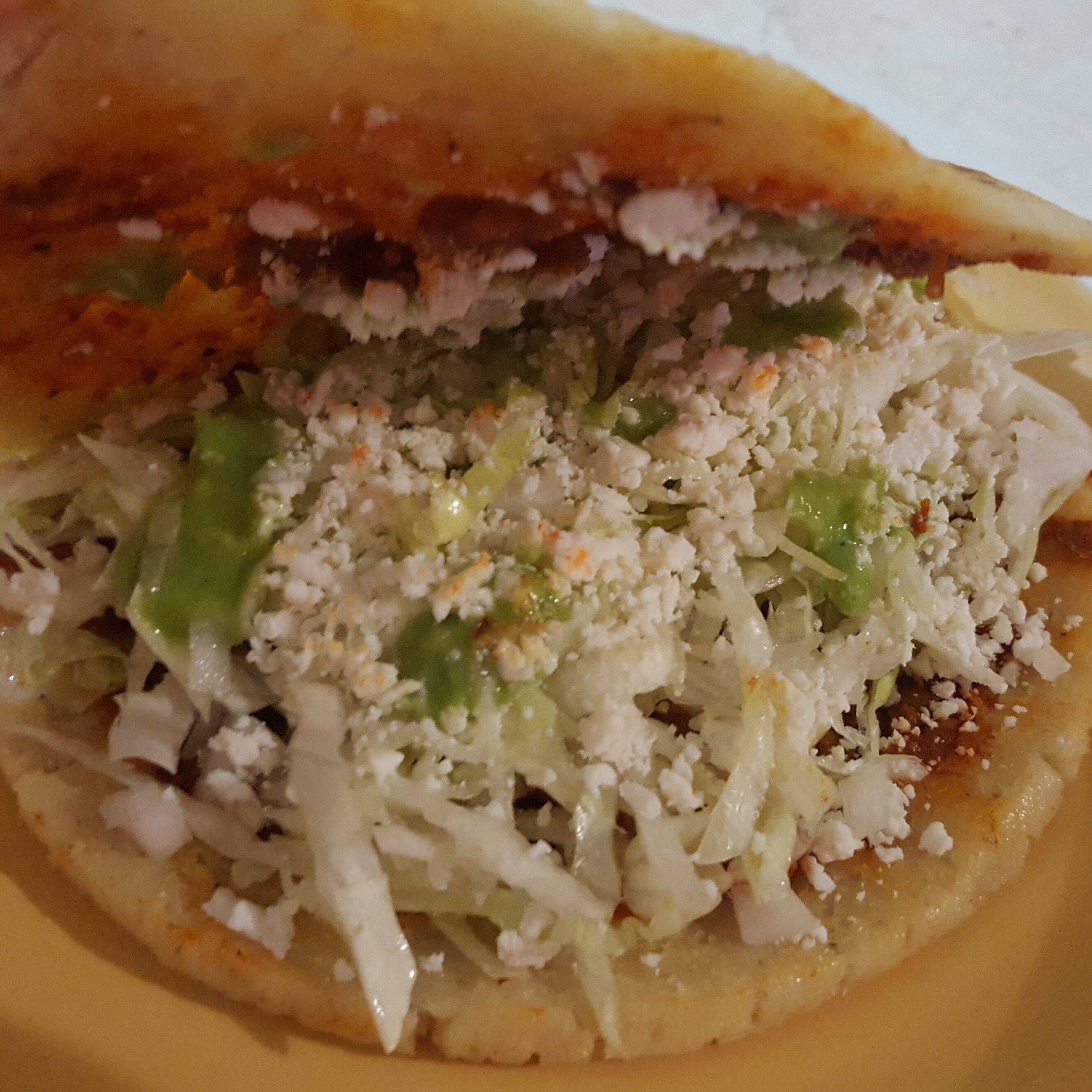 Gordita rellena de chicharrón prensado.