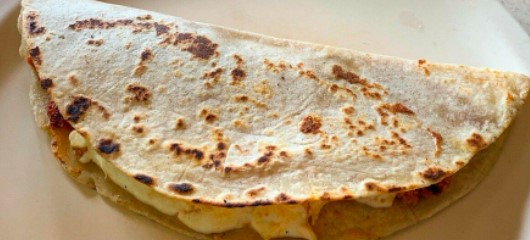 Quesadilla de 30 cm con queso de hebra y un guiso a elegir
