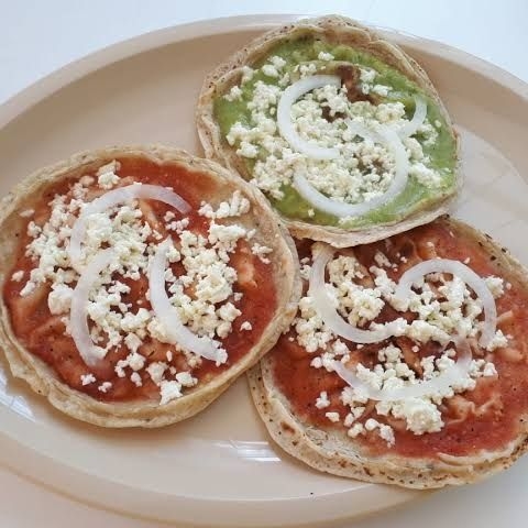 Tortilla salsa queso y cebolla son medianas