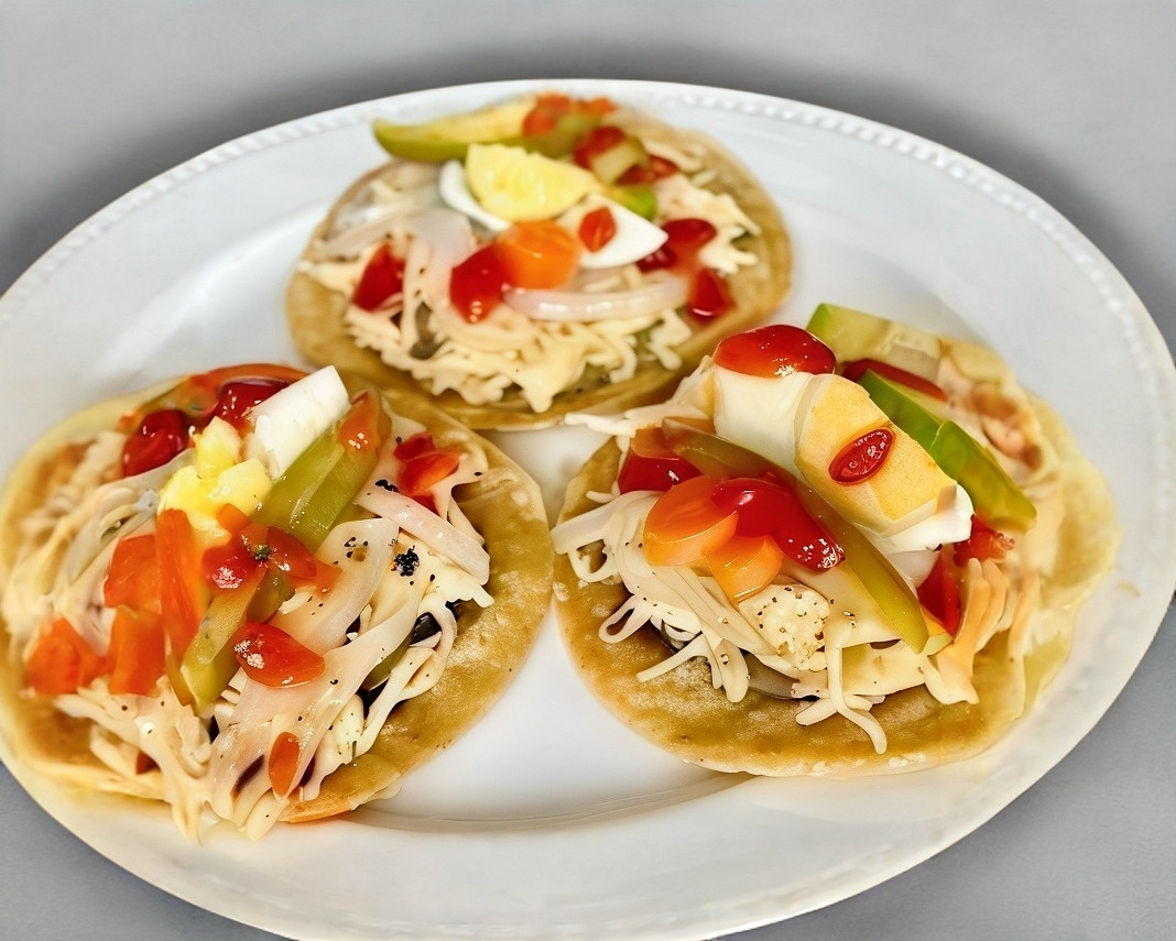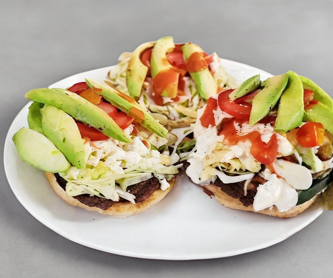 Preparadas con queso crema, jitomate aguacate y guisado a alegir