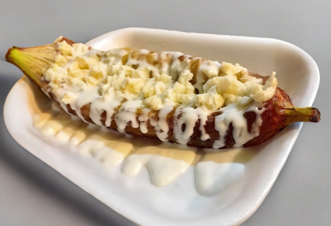 Preparada con salsa a elegir y el guisado, con cebolla picada y queso