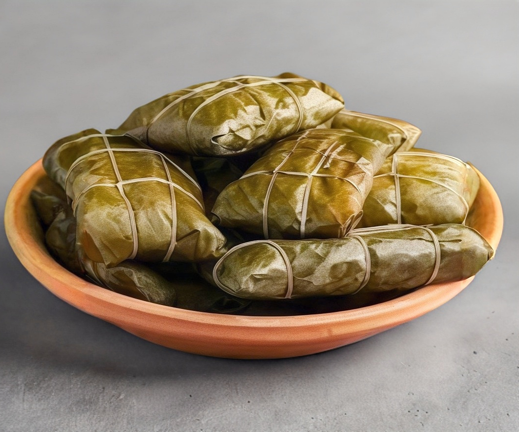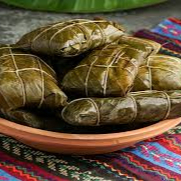 Tamal ranchero de masa cocida con pollo y envuelto en hoja de platano