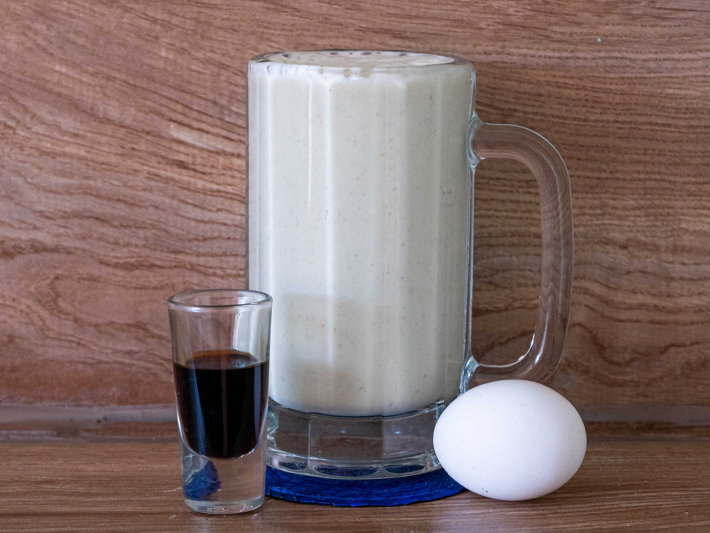 Exquisita combinacion licuada de Huevo, Vino jerez, Azúcar y jugo de Naranja