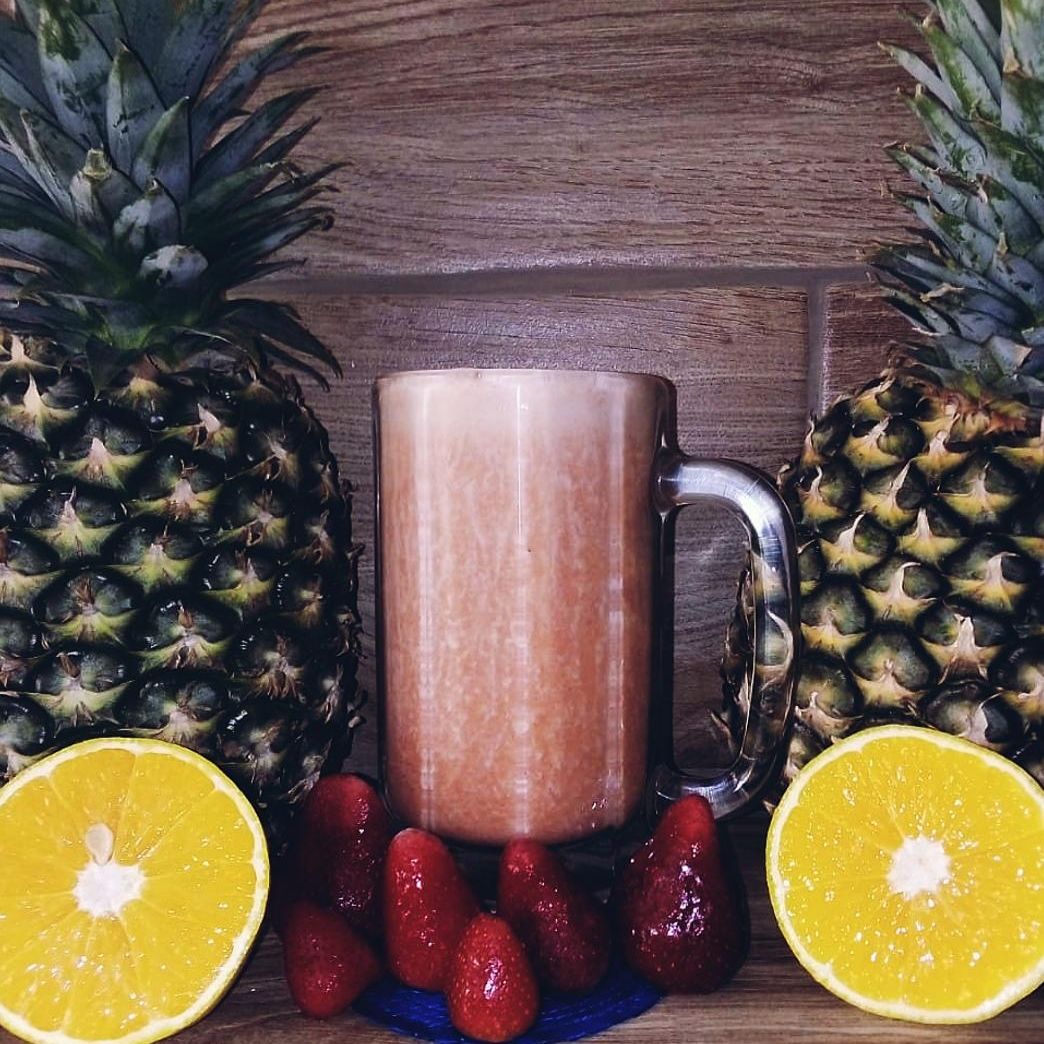 Exquisita combinacion licuada de Piña, Fresa y jugo de Naranja