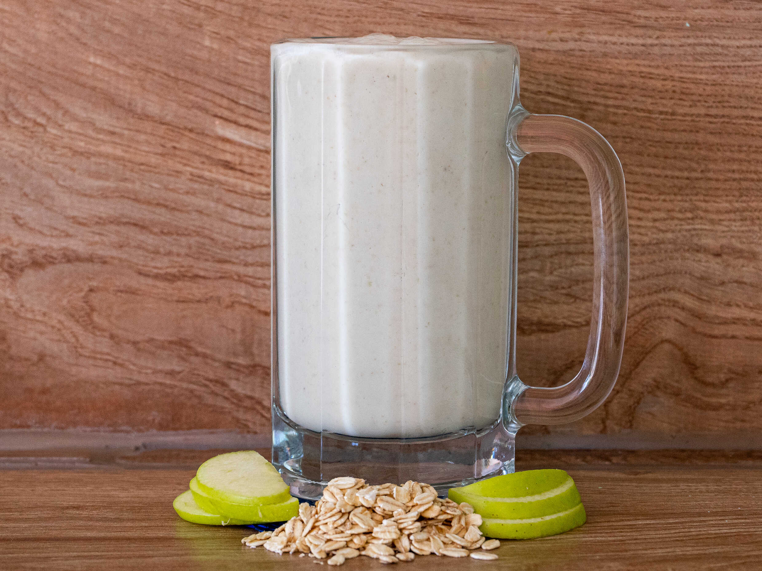 1/2 litro manzana, avena, leche, azúcar, vainilla, canela, hielo.