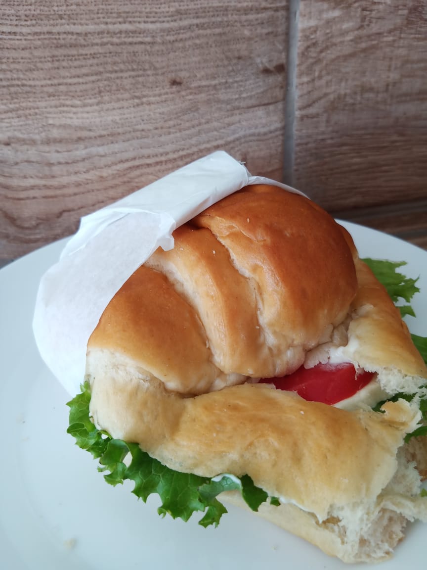 Cuernito, Mayonesa, Frijoles, Jamon de pavo, Queso Fresco, tomate, Lechuga