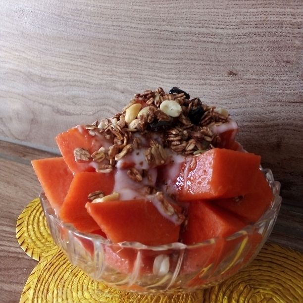 450grs aprox. Papaya, melón, manzana, piña, plátano, yogurt, granola y miel.