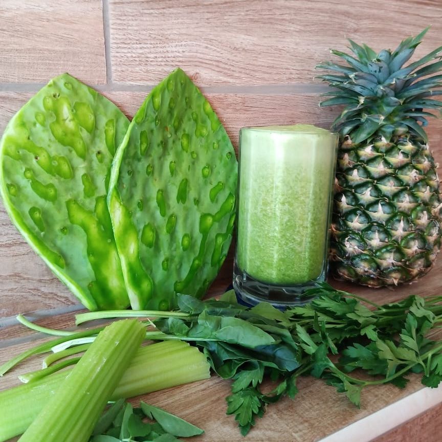 Poderosa combinacion licuada de Nopal, Apio, Espinaca, Alfalfa, Perejil, Piña, Ajo, Linaza, Chia, Avena, Chayote, Pepino, Limon, Guayaba, Jengibre, Manzana