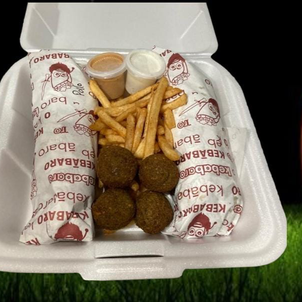 Kebabaro+Shawarma burger +orden de falafel+ Papas curly