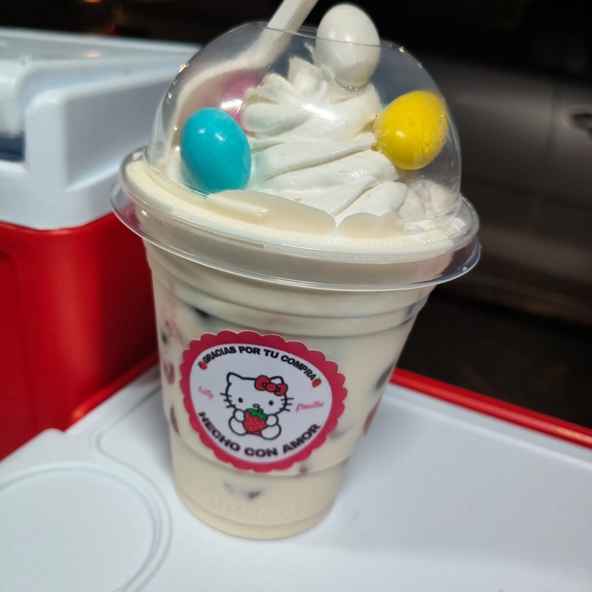 Crema, chantilly,fruta de su preferencia,2 Toping incluidos, Hershey's o lechera