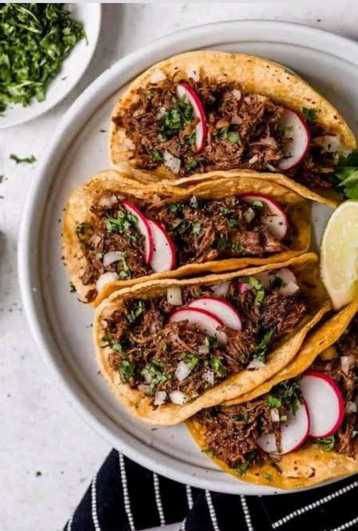 1/2 Kilo de barbacoa de res con su litro de consomé, salsa, limones, cebolla con cilantro, rábanos , pepino y tortillas.