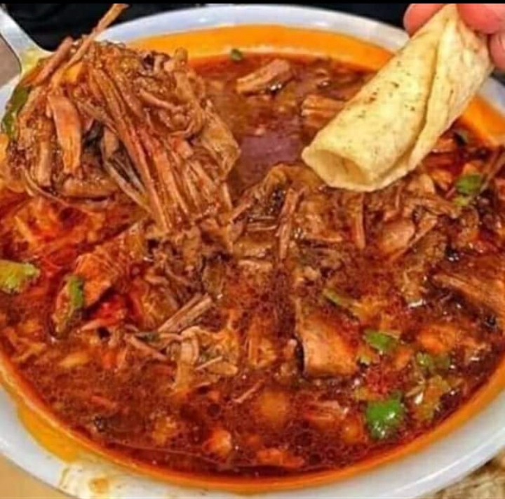 Litro de birria con 250 gramos de carne,tortillas , salsa ,limones y ensalada