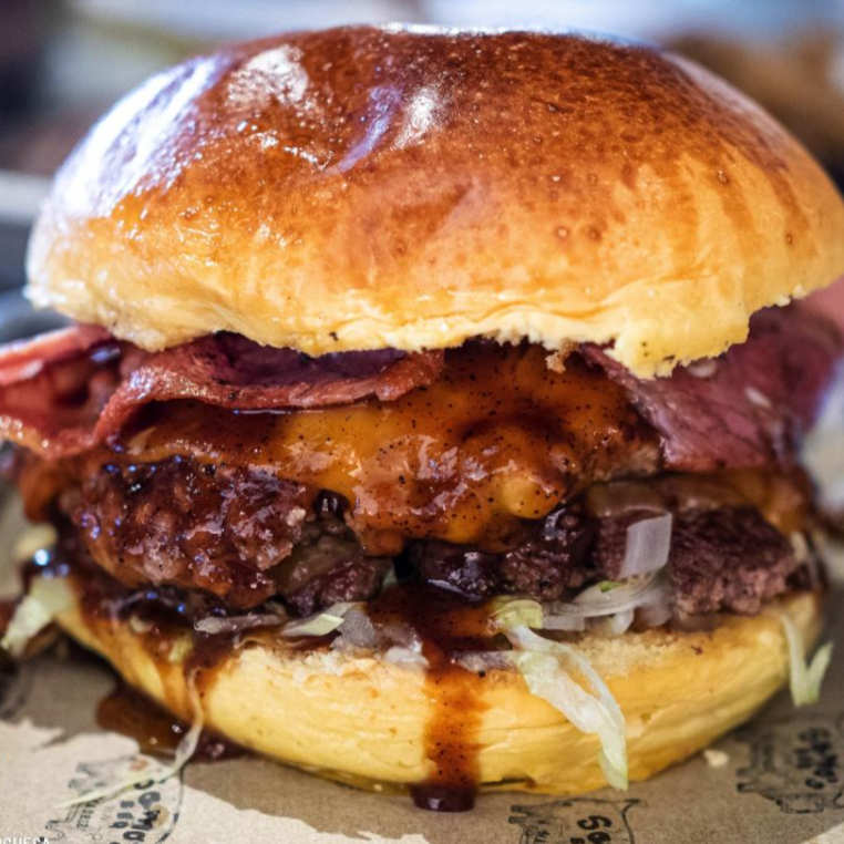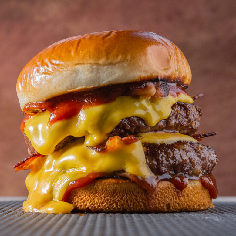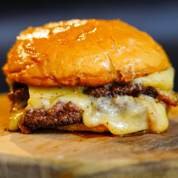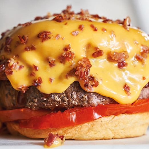Deliciosa hamburguesa con ese Queso Sabroso que conoces y tocino caramelizado