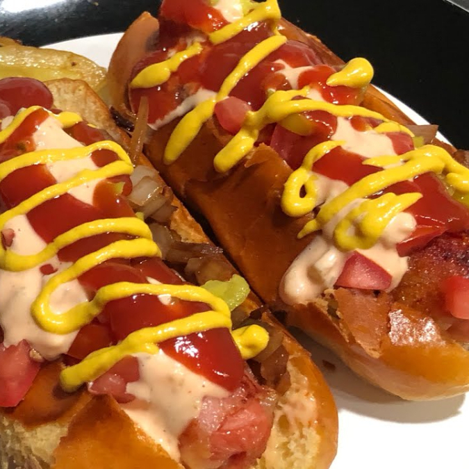 delicioso hotdog con un toque a mantequilla con Salchicha de pavo y Aderesos