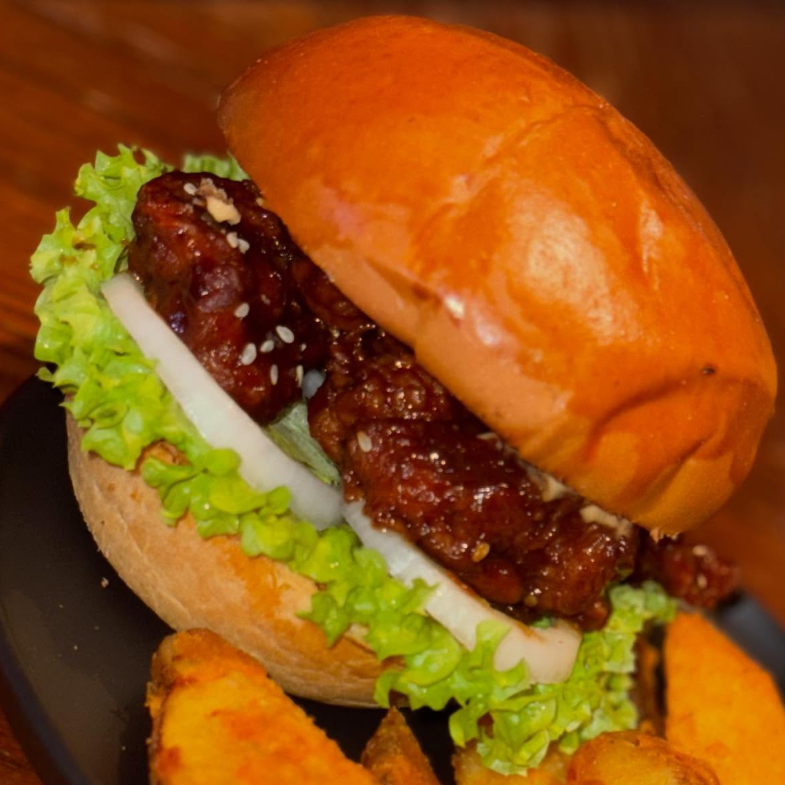 Deliciosa Hamburgesa Con Tocino frito y Nuestra Deliciosa Carne