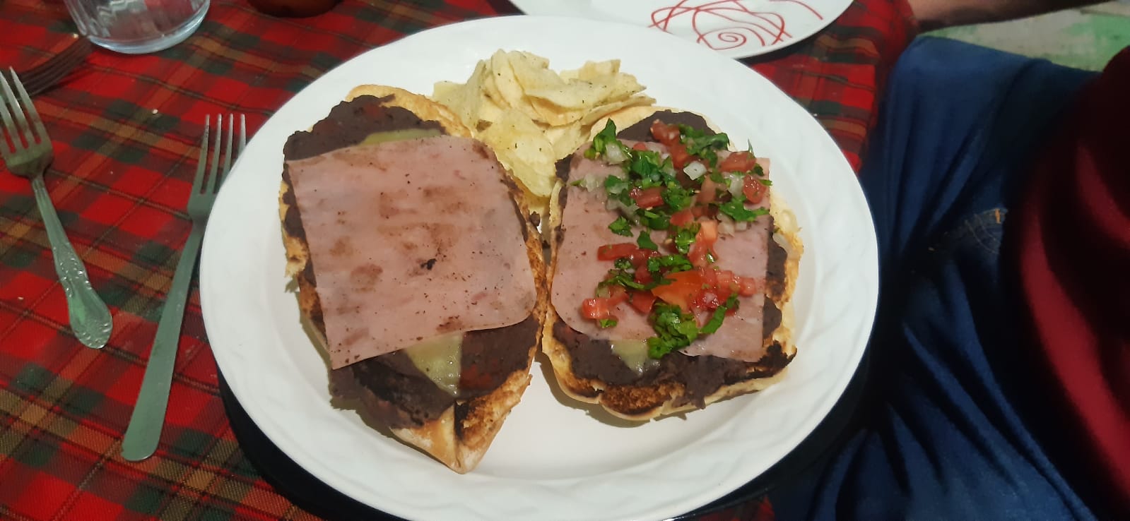 Preparado con mayonesa, jamón, queso manchego, frijoles con chorizo