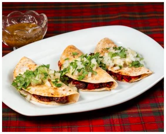 3 piezas de tortilla de harina rellena de queso manchego y chorizo