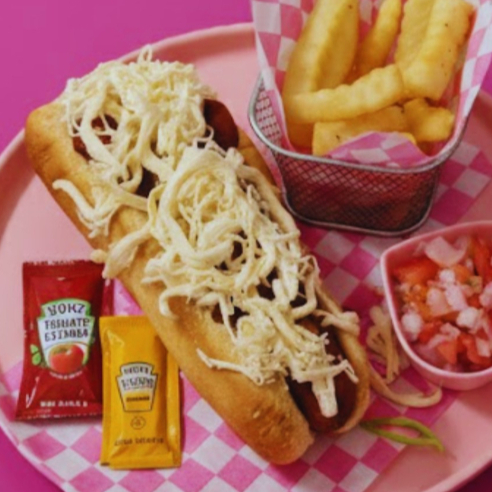 Pan, salchicha, queso manchego, aros de cebolla, salsa de tu preferencia: ranch, bbq, búfalo, mostaza, cátsup, queso amarillo, aderezo de la casa (chile de árbol).