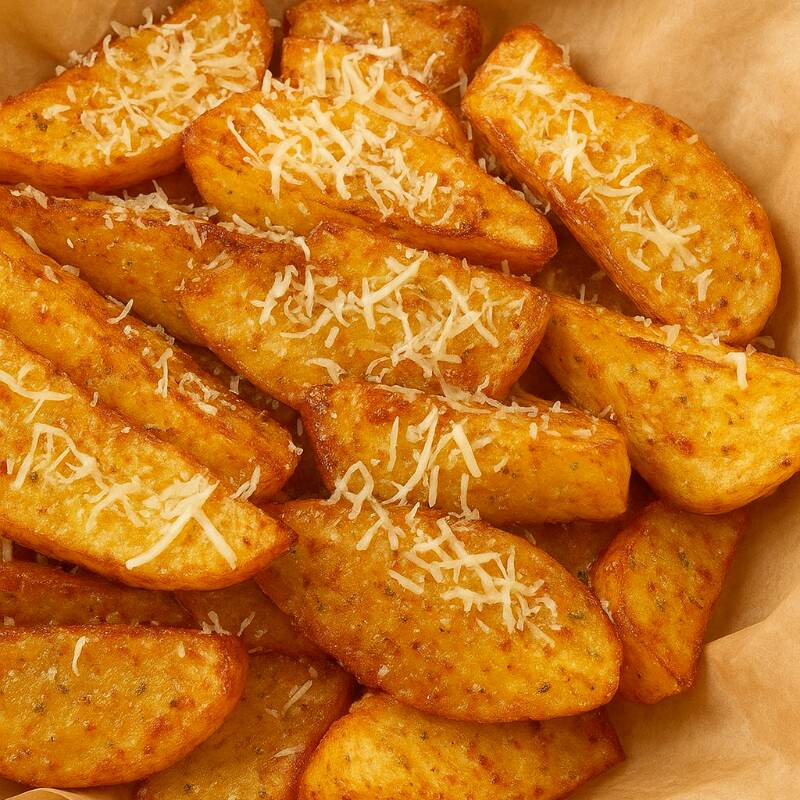 Orden de papas en gajo, con queso parmesano rallado y salsa de tu preferencia: ranch, bbq, búfalo, mostaza, cátsup, queso amarillo, aderezo de la casa (chile de árbol).