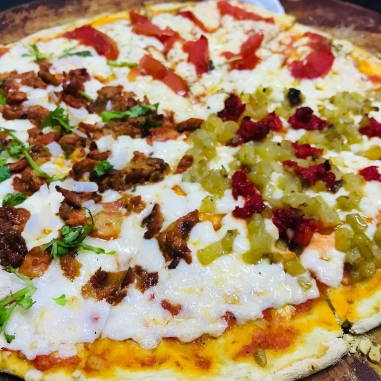 Bistec, pastor, pera con queso de cabra, mango con 3 queso, champiñón enchipotlado, champeroni, vegetariana, hawaiana, Margarita, espinacas a la crema, chicharron