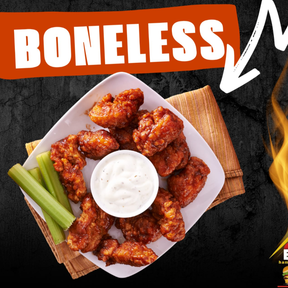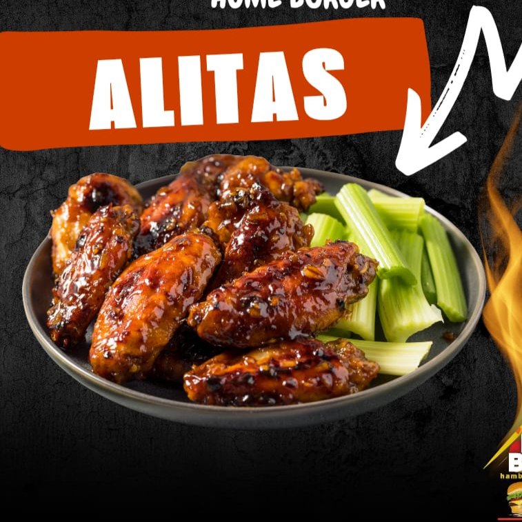 alitas bañadas en salsa, con aderezo ranche,pepino y zanahoria