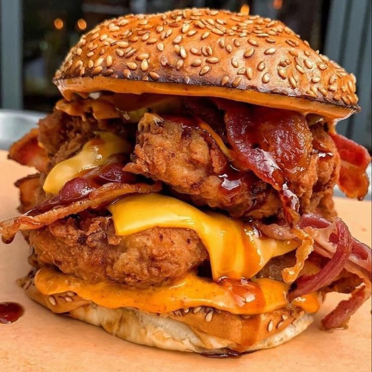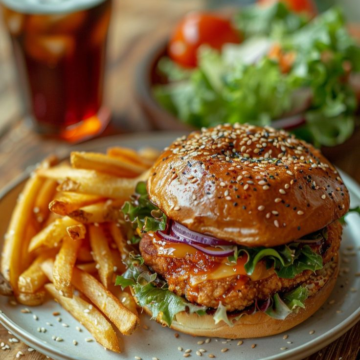 Pechuga de pollo crujiente hecha al momento 100% natural, servida en pan de sesamo mixto, acompañada de tiras de tocino bañadas en salsa BBQ, gratinada con nuestros cremosos quesos suizo y americano, con lechuga italiana, cebolla morada y mas BBQ para que cada bocado sea una explosion de sabor unico y delicioso. Incluye papas francesa o gajo a elegir.