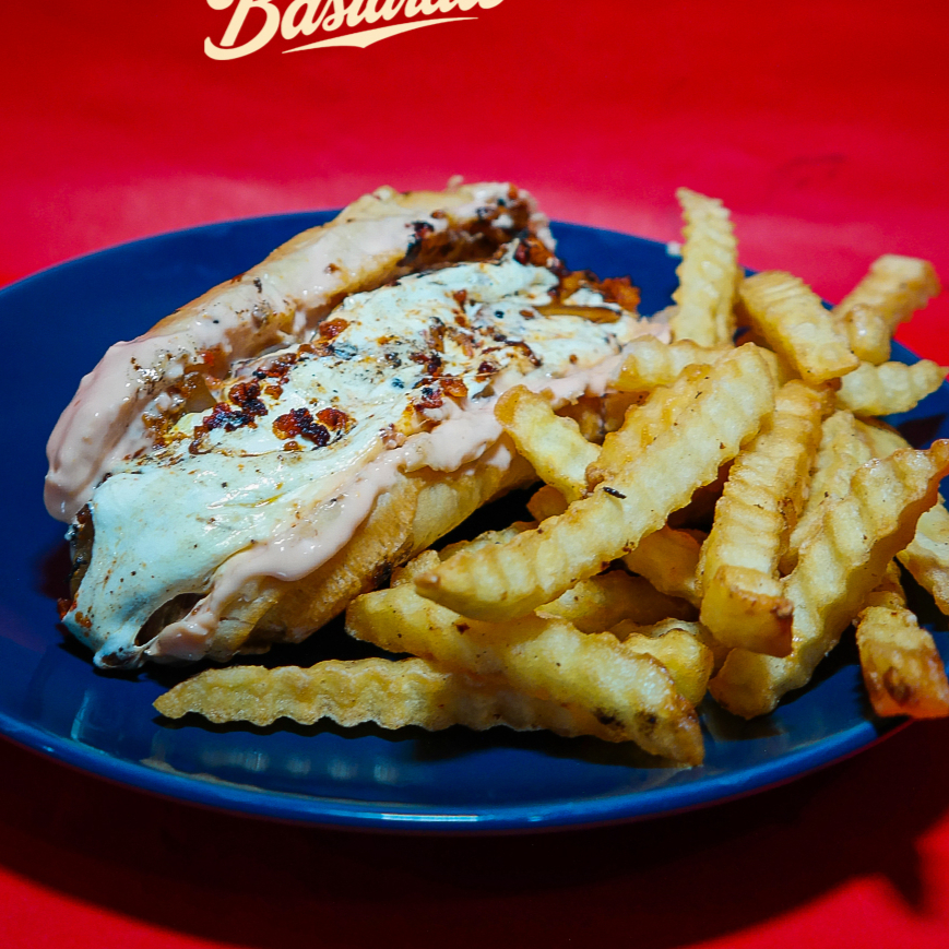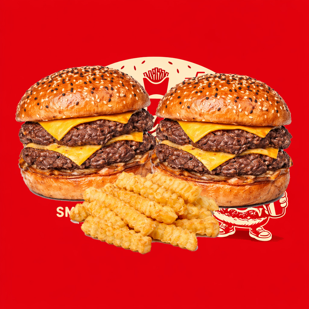 Smash burguer con doble carne y queso acompañada de nuestra salsa de la casa