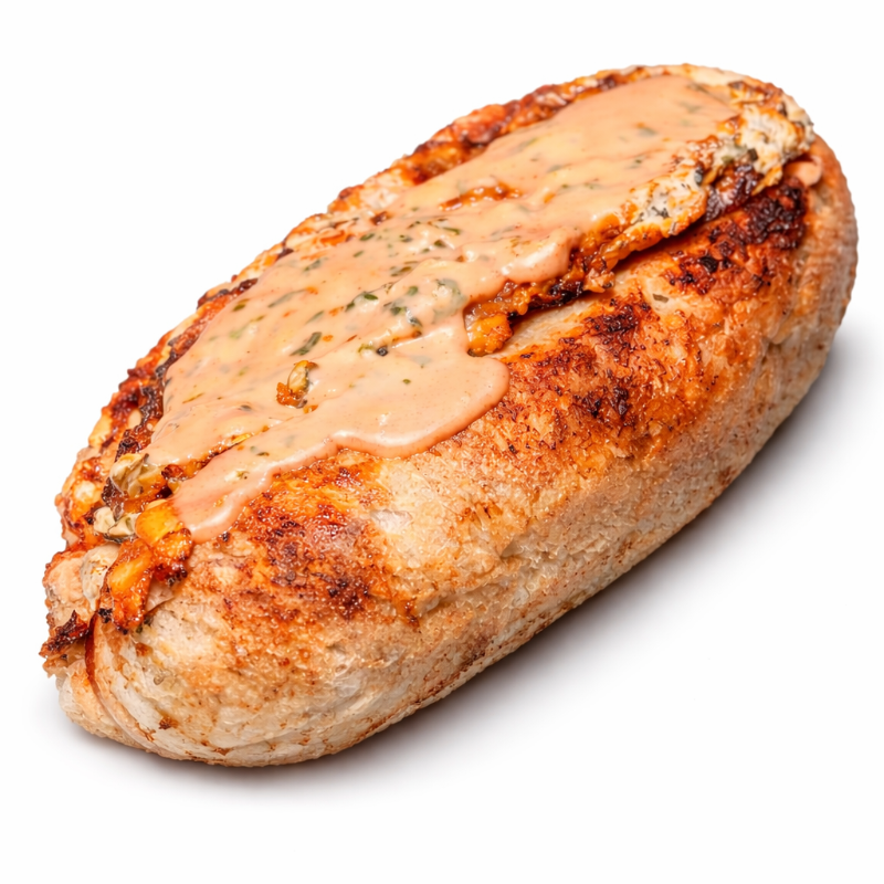 Pan de la casa, con salchicha premium acompañado de queso fundido con carnes frias cubierto de nuestra salsa de la casa.